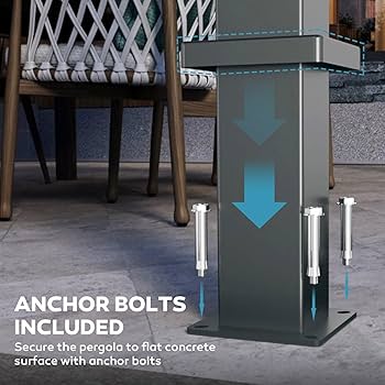Našu pergolu možete jednostavno i brzo sami sastaviti. Isporučuje se s ekspanzijskim vijcima za pričvršćivanje na tlo i kompletnim setom alata. Mora se montirati na čvrstu podlogu, na primjer postavljanjem betonskih temelja (ili velikih teških pločica za terasu). Provjerite je li obloga postavljena okomito i ravno.
