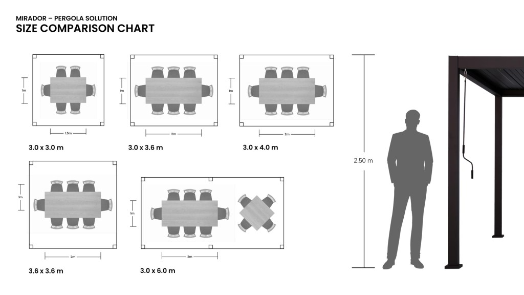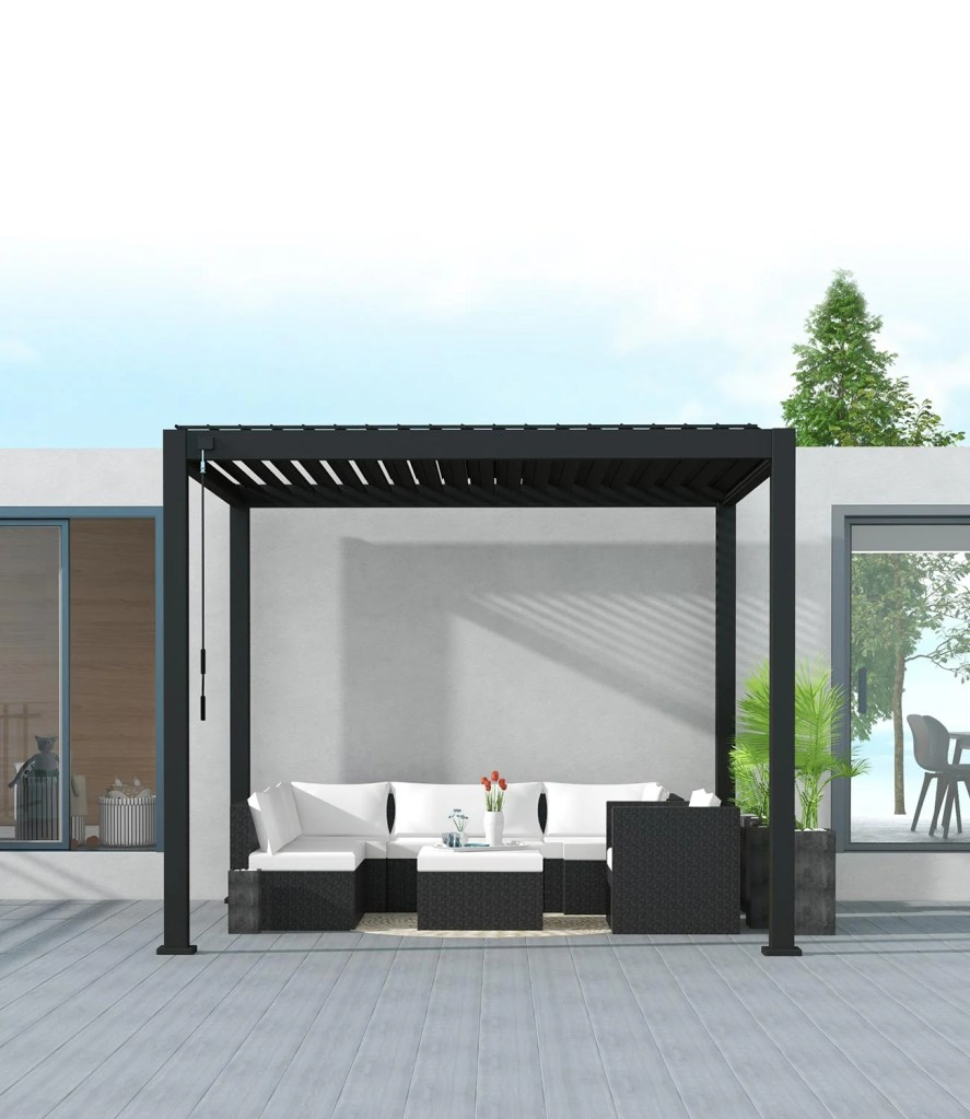 - SPREMNO ZA KORIŠTENJE – naša pergola idealno je rješenje spremno za korištenje za vašu terasu. Samostojeća ili povezana s postojećim zgradama, pergola je savršeno proširenje unutarnjeg dnevnog prostora.